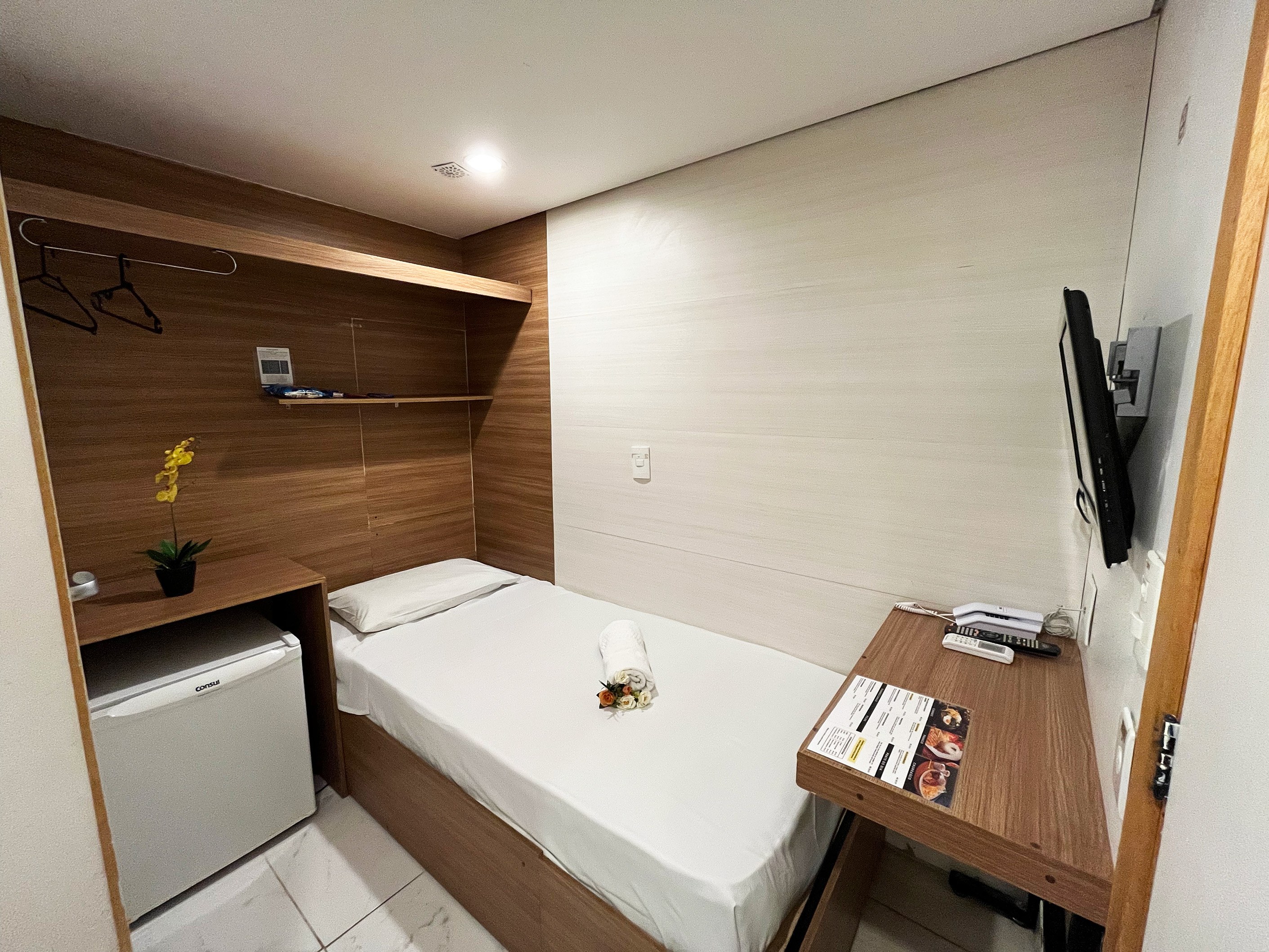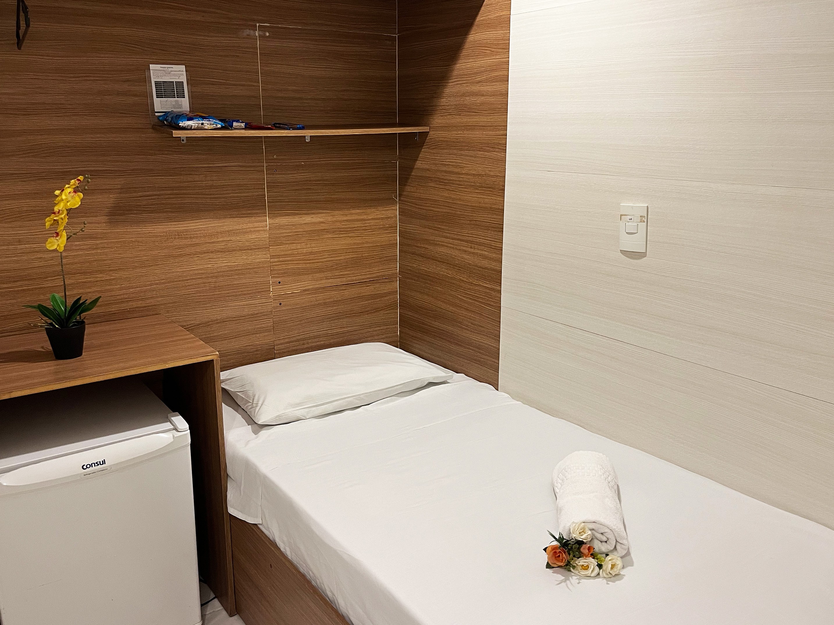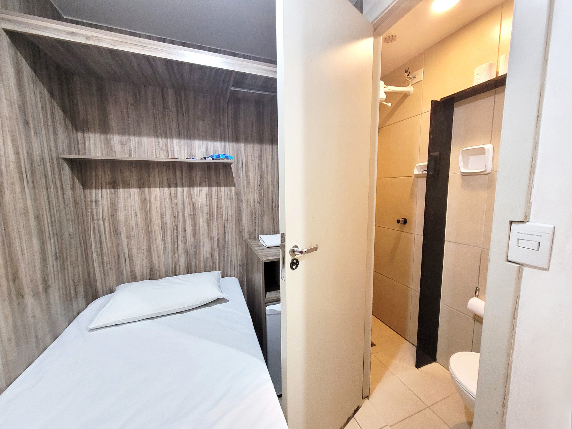 Pensado para quem vem a trabalho, tem uma estadia curta ou precisa de um lugar funcional para dormir bem, o Quarto Cabine é a opção mais econômica do hotel, sem abrir mão de conforto e localização.